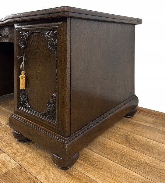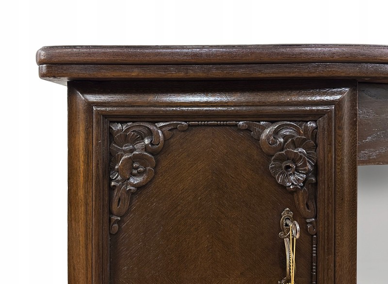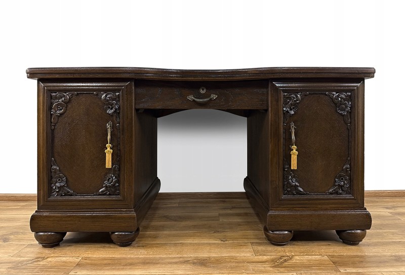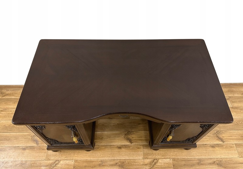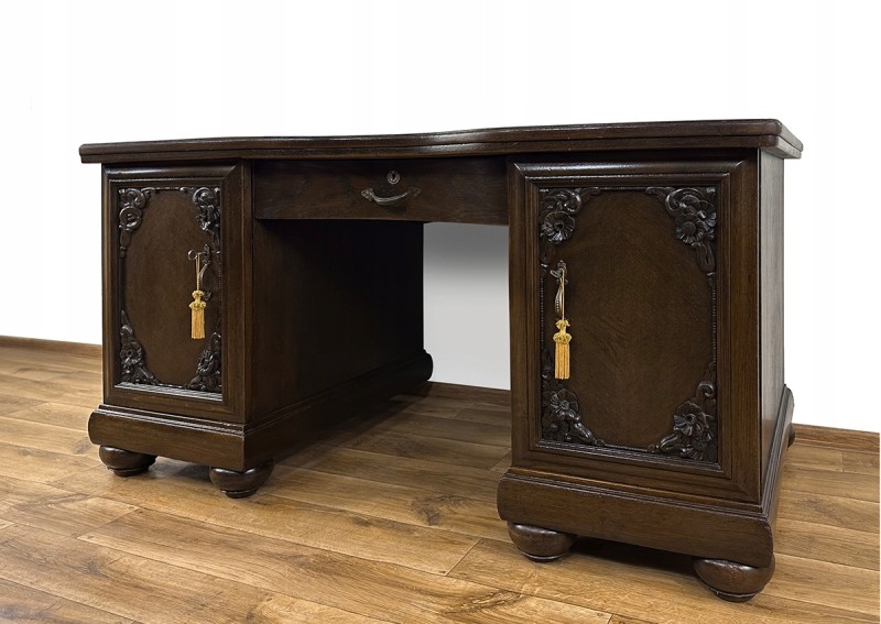 Przedstawiamy Państwu zabytkowe, liczące liczące około 100 lat, rzeźbione, dwustronne biurko.