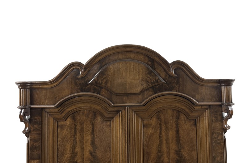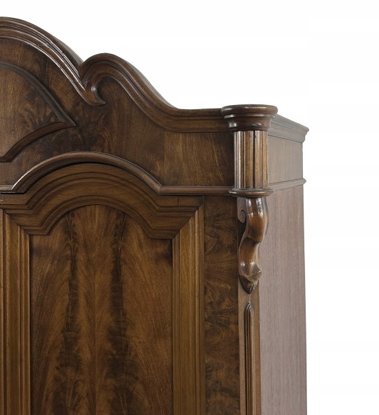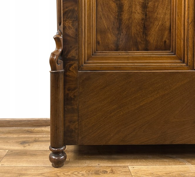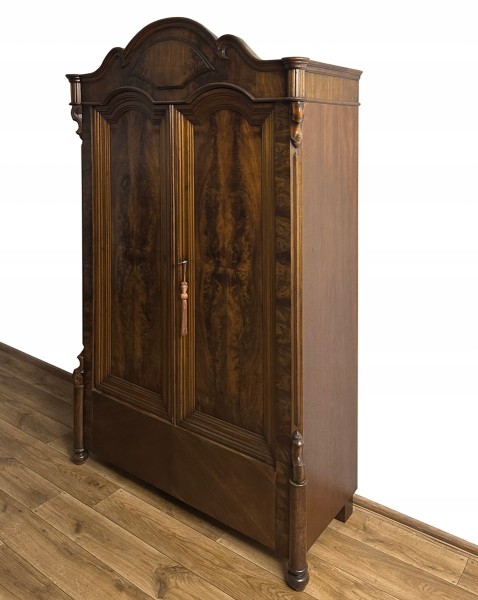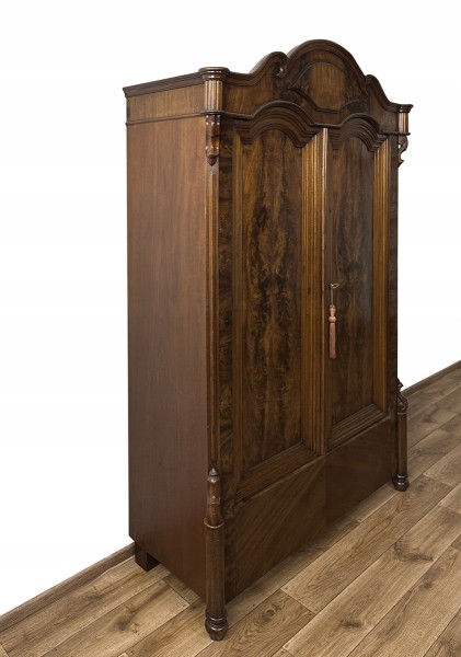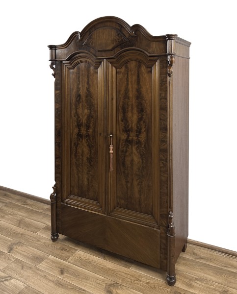 W górnej części szafa ma łukowate, dekoracyjnie wykrojone zwieńczone. Posiada dwa skrzydła drzwiowe. Przy bocznych krawędziach umieszczone są ozdobne, rzeźbione detale, charakterystyczne dla XIX-wiecznego wzornictwa, m.in. nawiązujące kształtem do kolumienek.